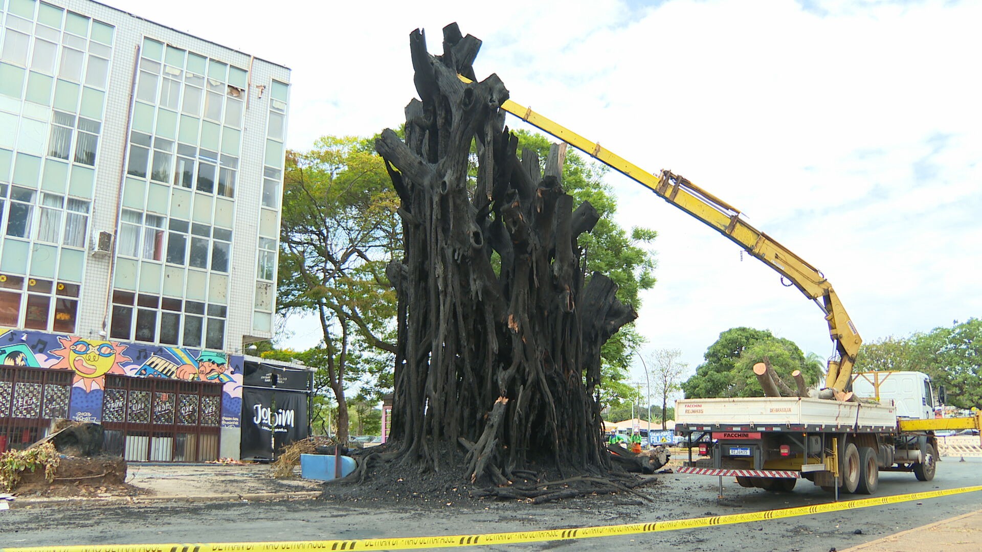 Gameleira estava plantada no local há quatro décadas e pegou fogo na madrugada de segunda (13). Incêndio foi criminoso e polícia vai colher depoimento de suspe…
