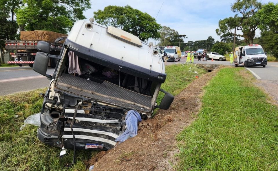 Os pais da criança morreram na acidente, o caminhoneiro sofreu apenas ferimentos moderados...