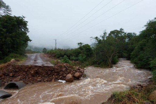 Trânsito é bloqueado no desvio da ponte sobre a várzea do Rio Toropi, na BR-287