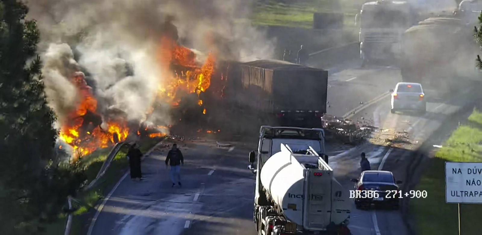 Vítimas não tiveram as identidades divulgadas. Colisão provocou um incêndio e bloqueou o trânsito no km 272 da rodovia.