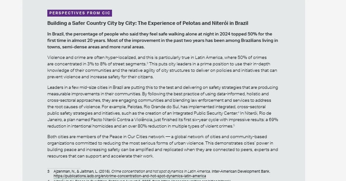 Pelotas é citada como caso exemplar na Pesquisa Mundial de Vitimização apresentada em Nova York pelo Instituto Gallup. A análise é feita em 144 países