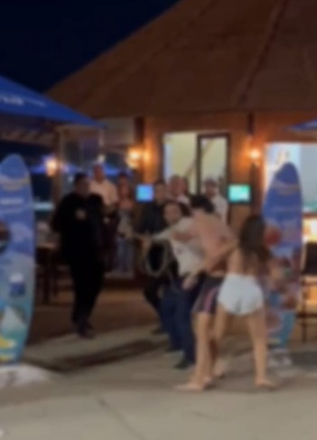 Nas imagens, é possível ver o momento da briga envolvendo seguranças, clientes e frequentadores