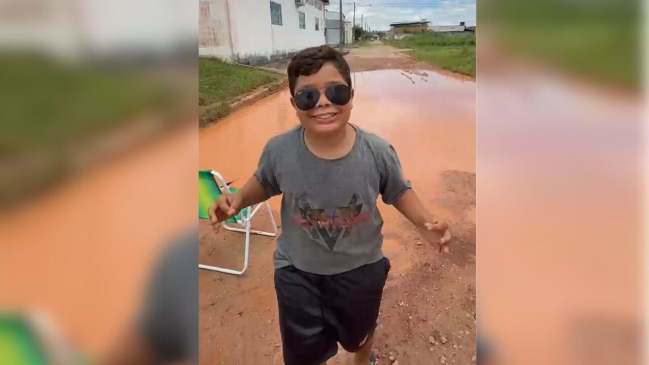 Um óculos escuro, uma cadeira de praia e uma vara de pescar. É assim que o garoto Arthur Lima de Souza, de apenas 11 anos de idade, inicia um vídeo para mostrar para toda a Marabá a situação da via em que mora (Rua 6 Quadra 203, Bairro Cidade Jardim), onde o asfalto desapareceu e deu lugar a várias lagoas, inclusive a que ele aparece “pescando”.