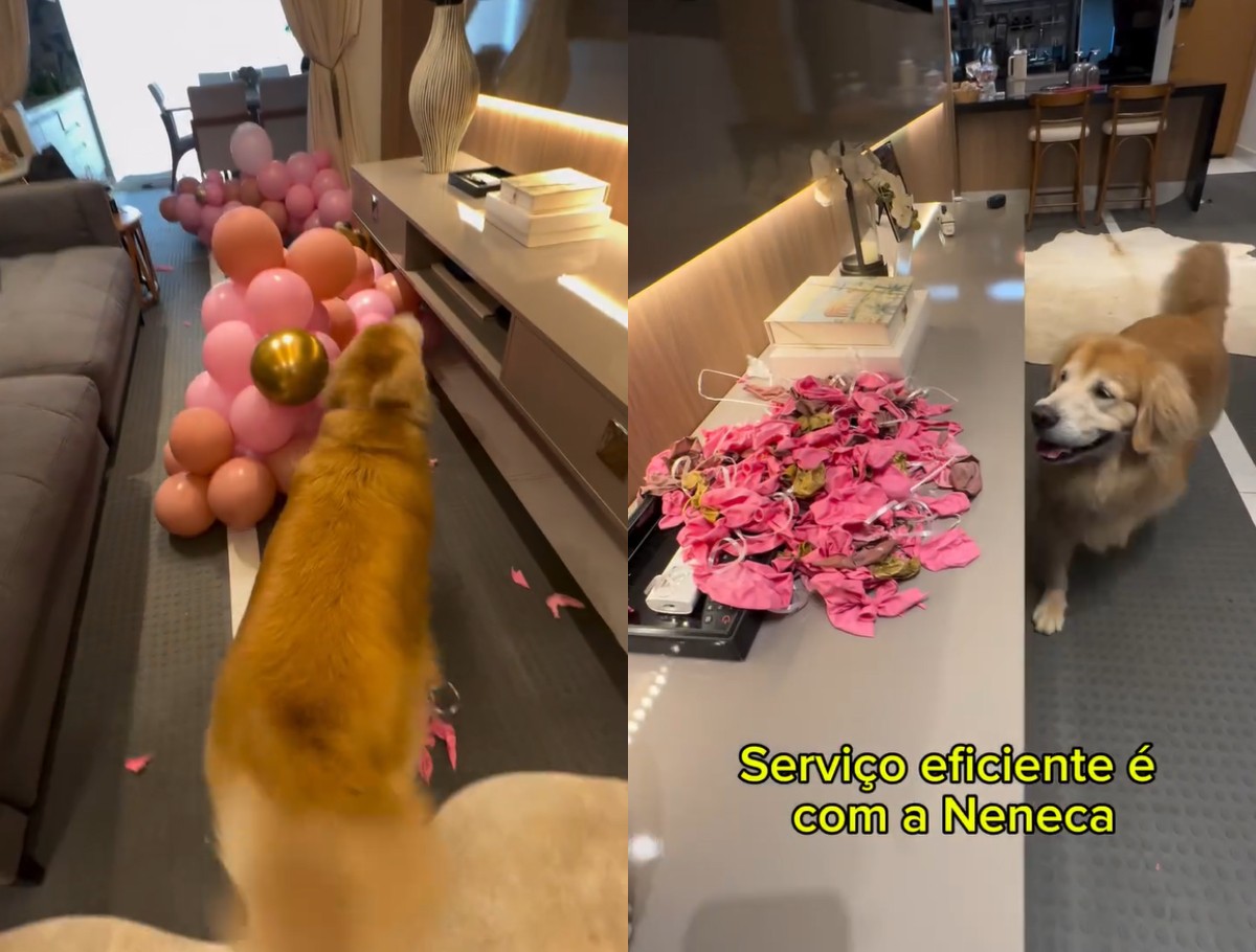 Com 2 milhões de acessos, vídeo mostra a golden retriever que estoura balões e virou a atração de um condomínio ao